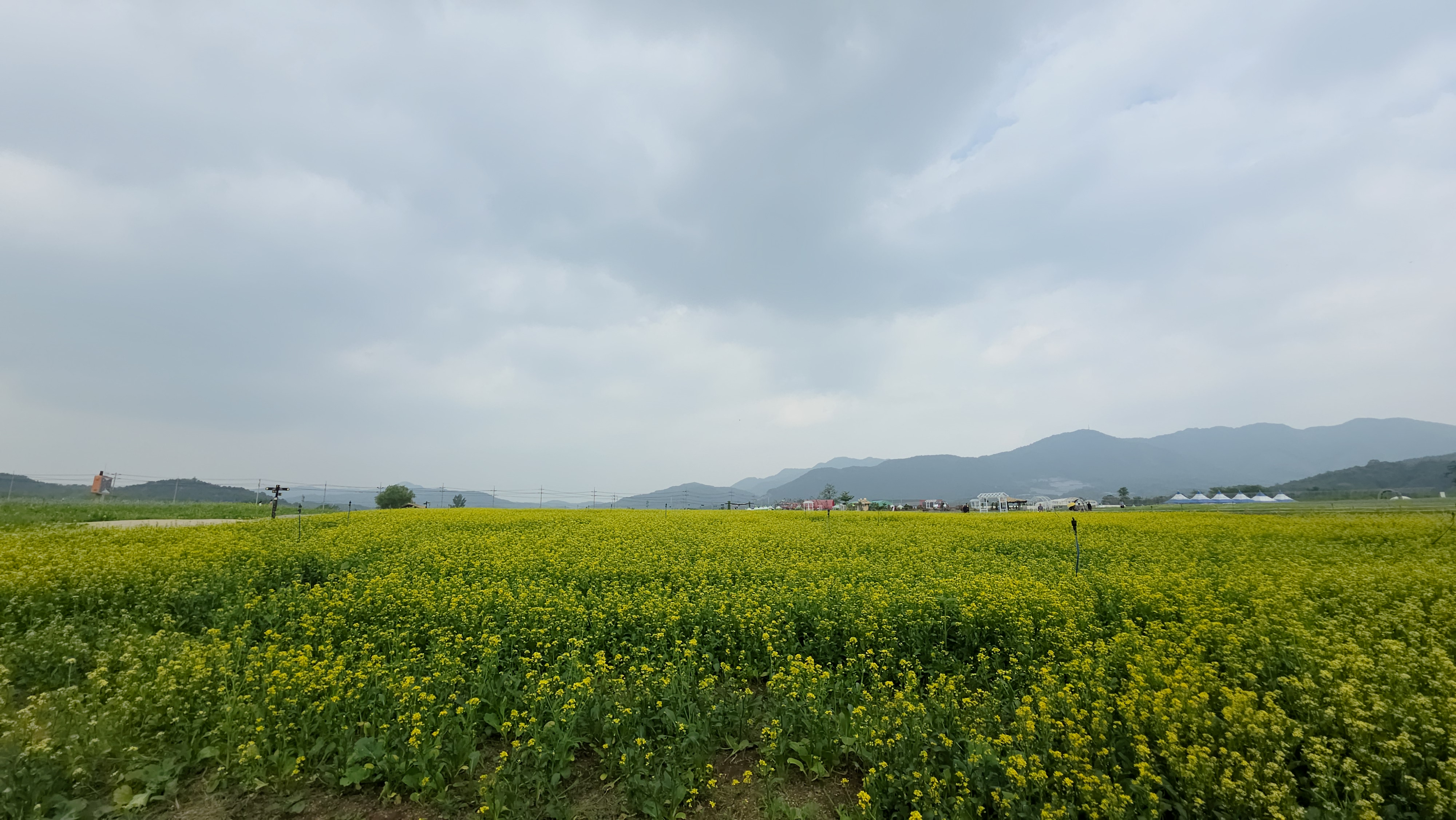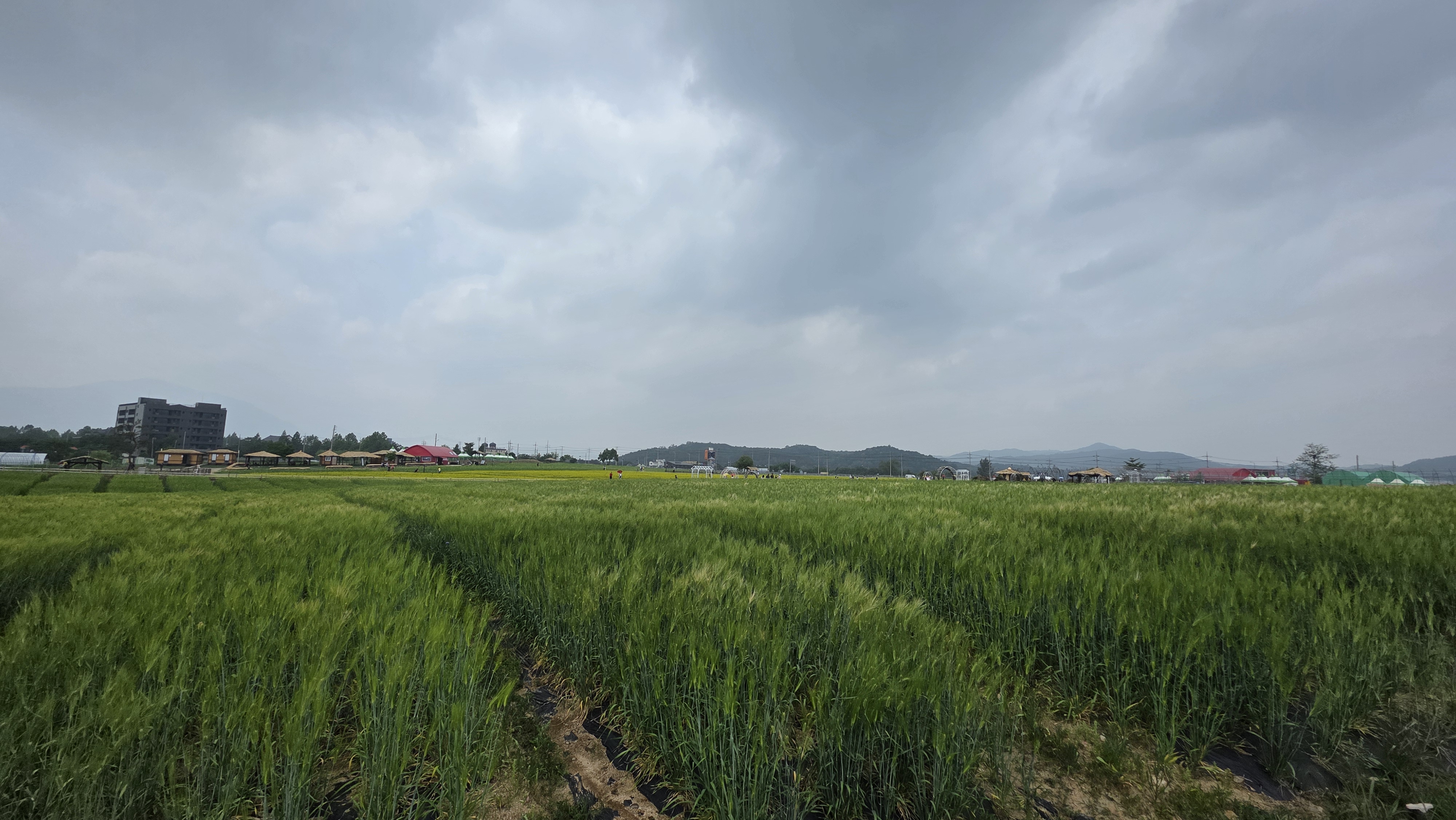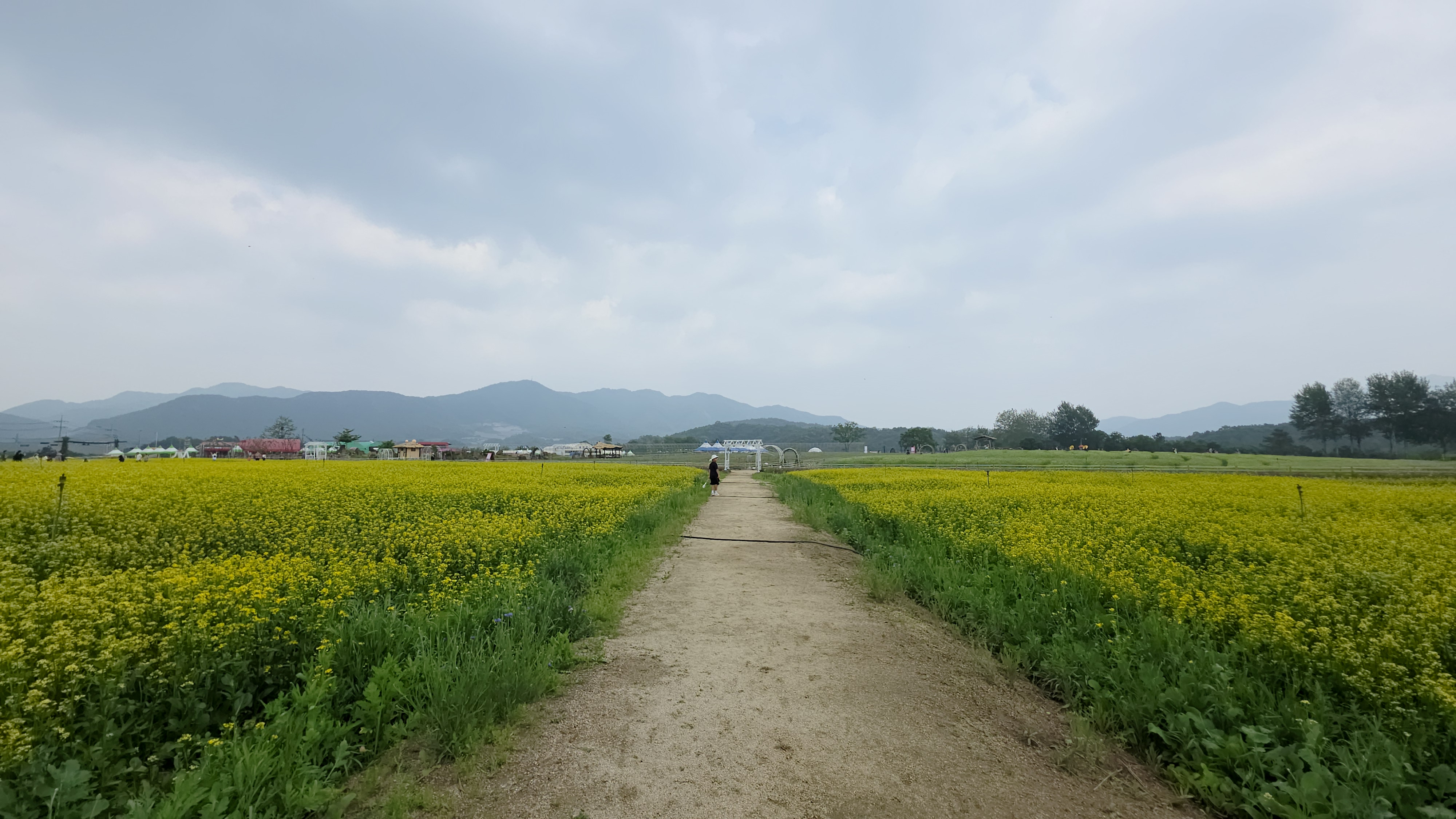 아직 꽃이 많이 피어있지는 않습니다. 유채꽃정도? 그리고 꽃은 아니지만 청보리… 그래도 너른 들판에 먼 산을 배경으로하는 테마별 꽃밭은 머릿속에만 있었던, 한 번도 직접 경험해보지 못한 ‘꽃밭에서 노니는’ 영화 속 장면 안에 들어간 느낌입니다.